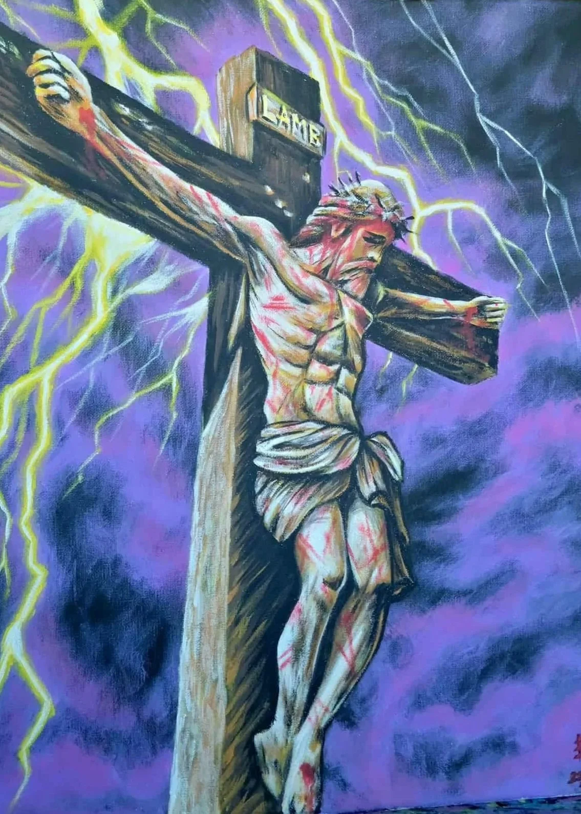 Every stroke of color and shadow seeks to honor the weight of the cross — not only as an instrument of execution, but as the ultimate symbol of love, redemption, and victory over sin. This piece invites viewers to pause, reflect, and remember that this moment of agony was also the moment of greatest hope for the world.